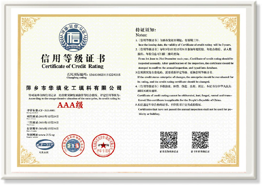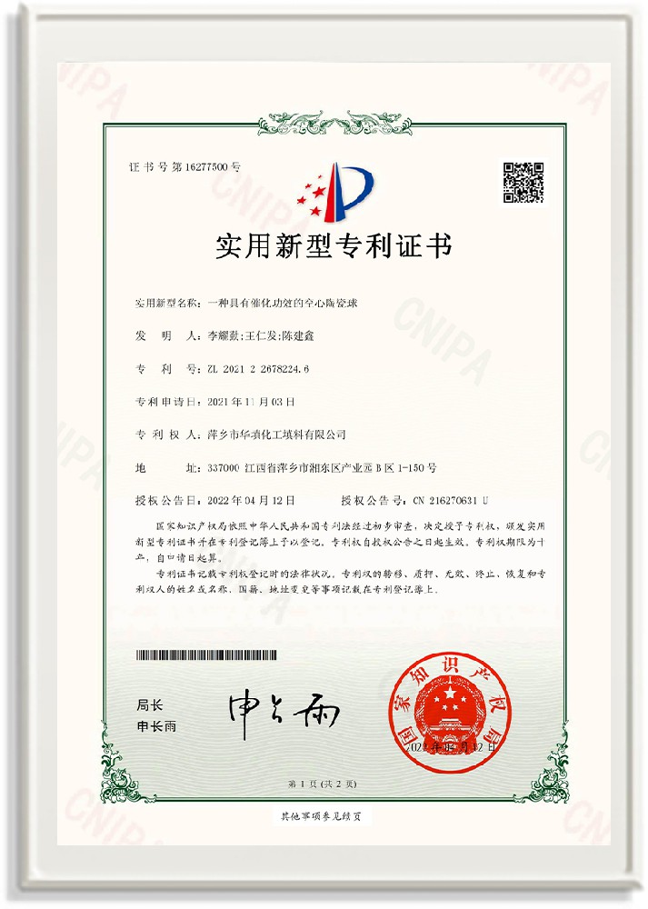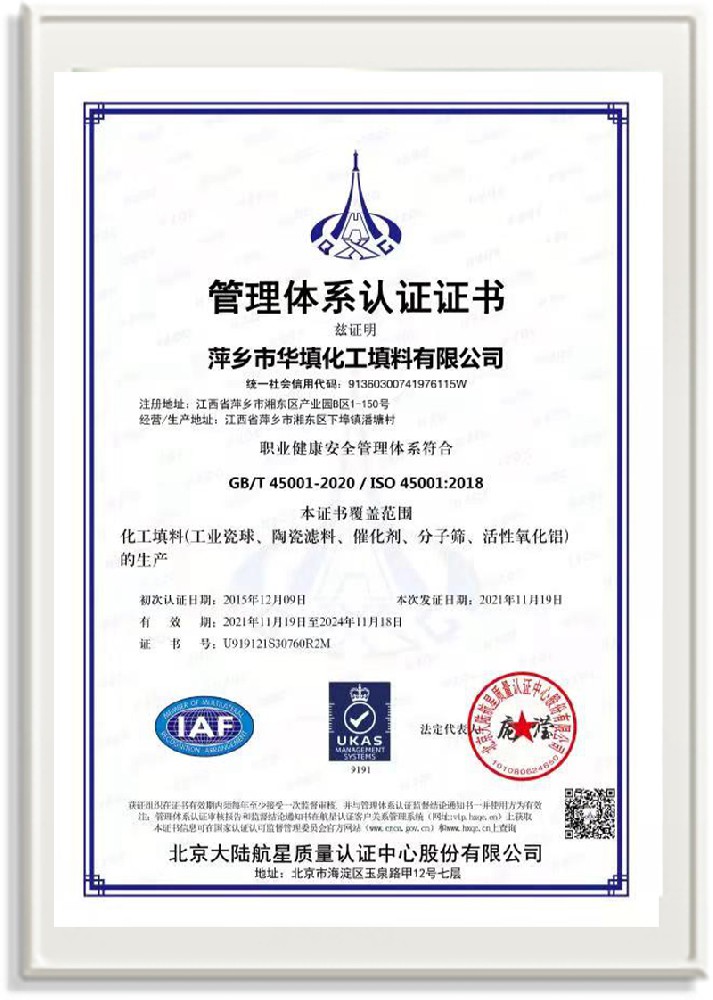 萍鄉(xiāng)市華填化工填料有限公司,位于320國道、109國道、浙贛鐵路、昌金高速公路貫穿其中,交通便利,是江西西部一顆燦爛明珠,創(chuàng)建于20世紀70年代初期,是中國石油天然氣股份有限公司“能源一號網(wǎng)”會員企業(yè)、中國石化物資采購電子商務網(wǎng)絡和中國海洋石油總公司采辦業(yè)務系統(tǒng)成員單位,是上海大學江西材料基因組工程產(chǎn)業(yè)研究院工業(yè)陶瓷產(chǎn)業(yè)創(chuàng)新聯(lián)盟基地,且通過ISO9001:2015質(zhì)量管理體系、ISO14001:2015環(huán)境管理體系、ISO45001:2018職業(yè)健康安全管理體系認證的化工填料生產(chǎn)企業(yè)。公司擁有陶瓷、塑料、金屬填料、催化劑、活性氧化鋁、分子篩等產(chǎn)品生產(chǎn)線,現(xiàn)有固定資產(chǎn)3616萬元,占地面積3.8萬平方米。公司具有悠久的生產(chǎn)歷史、雄厚的技術力量和先進的生產(chǎn)工藝設備,可生產(chǎn)工業(yè)瓷球(支撐劑)、陶瓷、金屬、塑料質(zhì)的規(guī)整、散堆化工填料及分子篩、催化劑、生化濾料、活性氧化鋁、石化助劑、活性炭、環(huán)保材料、耐火材料等系列的200多種規(guī)格型號產(chǎn)品。